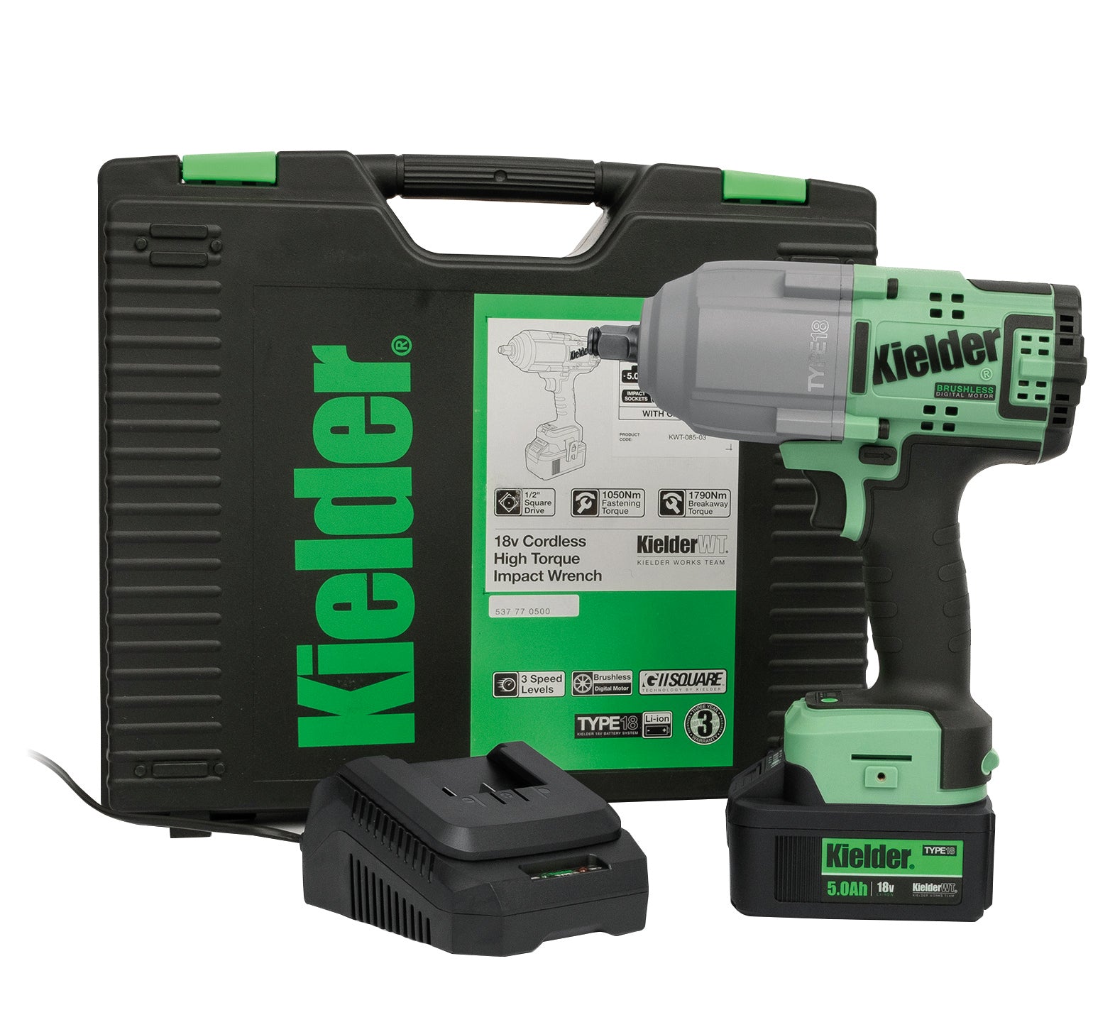 INCLUDES: Impact Wrench • 2 x 5.0Ah 18v Li-Ion Battery • Charger • Pro Carry Case