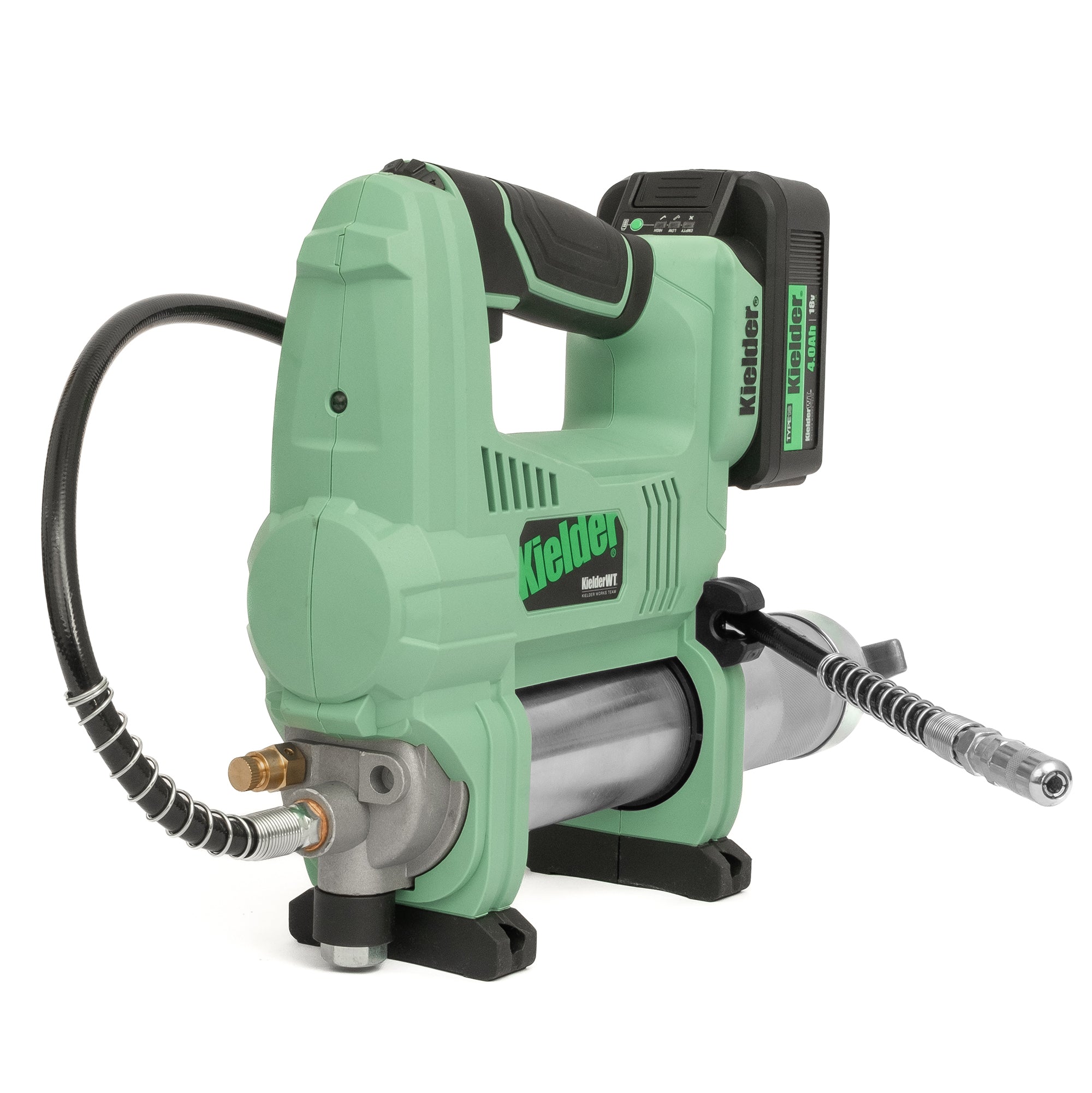 INCLUDES: Grease Gun • 1 x 4.0Ah 18v Li-ion Battery • Flexible Hose